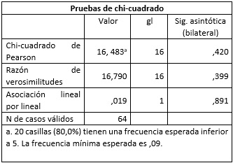 Con un nivel de significancia del 5% y un grado de libertad de 16 según la tabla de valores de chi cuadrado, teniendo un valor límite de 26,296, y de acuerdo al análisis realizado que arrojo un chi cuadrado de 16,483, se demuestra que la hipótesis nula para estas dos variables es aceptada.