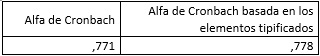 El análisis de la relación de entre los reactivos mostro un valor de 0,71, dando un Alfa de Cronbach confiable.