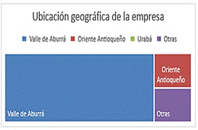 El 80% de las empresas encuestadas están ubicadas en el Área Metropolitana (Figura 5). Para este estudio, no obtuvimos respuestas de empresas localizadas en Urabá, aunque es importante tener en cuenta que varias de las empresas ubicadas en este municipio son gerenciadas por empresas matriz que se encuentran en Medellín o Bogotá.
