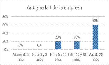 Como se muestra en la Figura 6, las empresas del estudio tienen más de 5 años de existencia jurídica, siendo en su mayoría empresas de amplia trayectoria (más de 60 años), lo que traza una ruta interesante en los estilos de dirección y en la madurez de la organización, incluyendo a los empleados que hacen parte de ella.