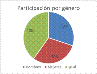 En la Figura 9 se puede observar que las personas que participaron en la encuesta perciben una participación en su mayoría igual de empleados hombres y mujeres (40%). Todavía se presenta en la región estereotipos acerca de los trabajos que son realizados por hombres o mujeres, por ejemplo, se considera que la confección es una empresa de mayoría mujeres y la industria automotriz es una empresa de mayoría hombres.