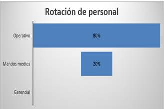 Con un promedio del 13,9% de rotación anual del personal en las empresas encuestadas, el 80% pertenece al nivel operativo y el 20% a los mandos medios (Figura 11). No se observó rotación en el nivel gerencial.