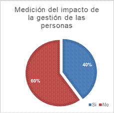 El 40% de las empresas encuestadas realizan algún tipo de medición relacionado con las personas en la organización. Estas mediciones son, por ejemplo: sistema de vigilancia epidemiológica de factores de riesgo psicosocial, evaluación de desempeño 360, y medición de clima organizacional. El 60% restante no realiza estas mediciones (Figura 13).