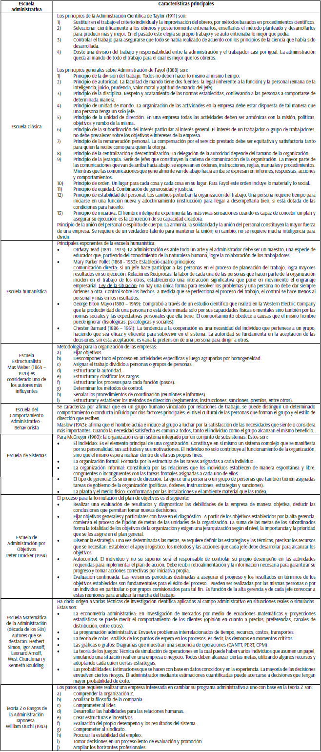 De acuerdo con lo expuesto por Ramírez y Ramírez (2008), presentamos la Tabla 1 donde exponemos las características generales de las diferentes escuelas que han aportado al proceso de gerencia de las personas en las organizaciones.