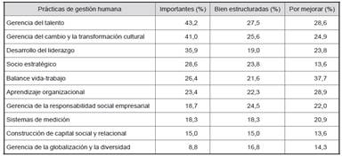 Comparando el resultado anterior con lo evidenciado por Calderón, Naranjo y Álvarez (2010) en la Tabla 4, podemos observar que la deuda de gestión humana como área estratégica aún sigue latente en el país.
