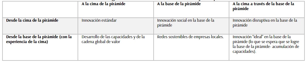 La teoría de la endosimbiosis proporciona una nueva visión de los procesos evolutivos en los seres vivos, a partir de la fusión de dos seres vivos, surge la creación de uno totalmente nuevo que tiene la oportunidad de tener las ventajas adaptativas de sus antecesores. Esta visión puede resultar particularmente útil cuando se observan los procesos de innovación, no como procesos aislados, sino como procesos colaborativos que permiten encontrar diferentes alternativas a los procesos de desarrollo innovador (Ver Tabla 6).