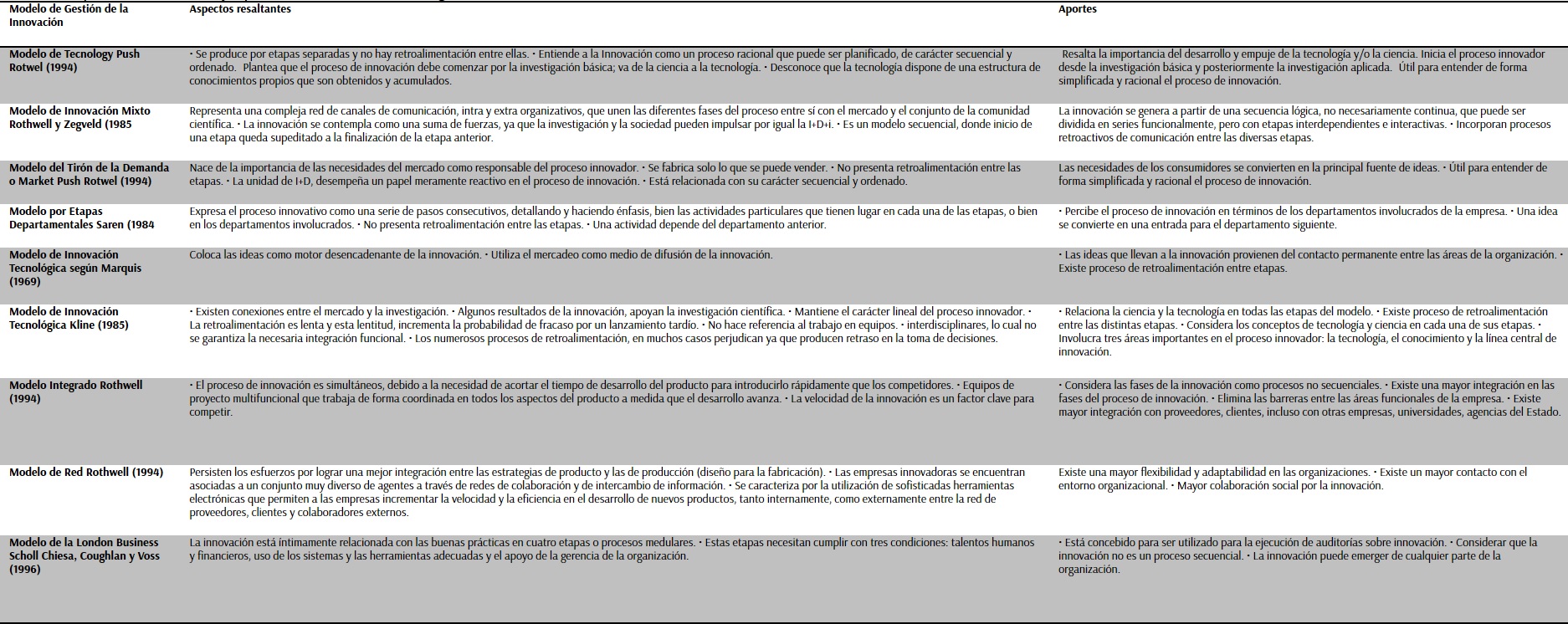 Como consecuencia de estas múltiples definiciones, con el paso del tiempo y del cambio tecnológico es posible encontrar diferentes modelos de gestión que posibilitan esta gestión; un aporte interesante lo propone Barreto Fereira y Petit Torres (2017) y se resume en la Tabla 2.