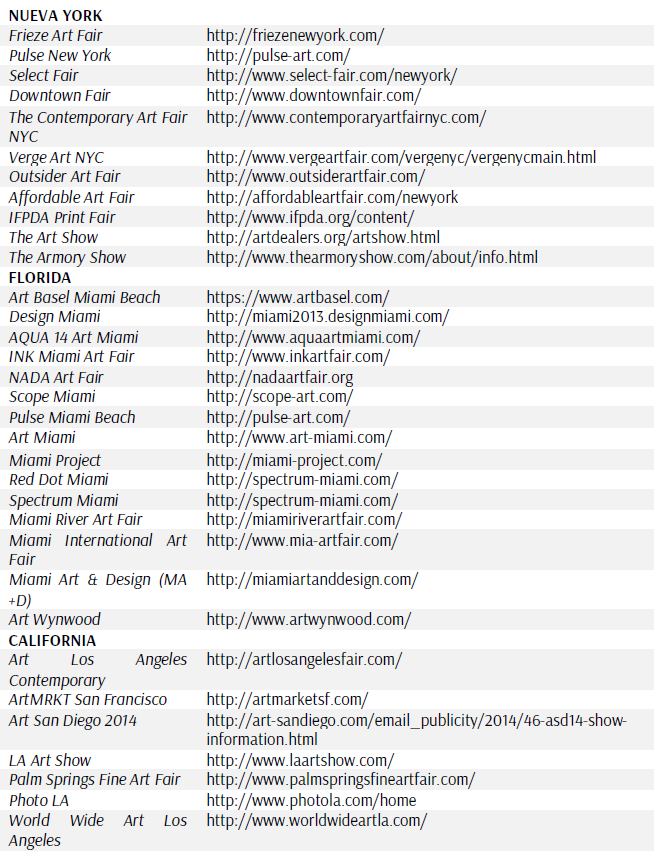 Algunas de las ferias de mayor interés para los artistas hispanohablantes son:
