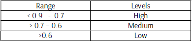 The influence of international trade on economic sustainability was determined by the adjusted ranges and levels proposed by Rosales (2014).