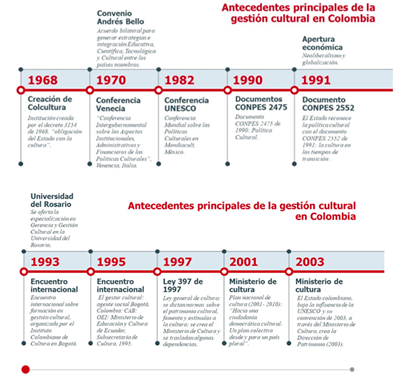 A continuación, en la Gráfica 1, se resumen los antecedentes principales que marcaron la gestión cultural en Colombia.