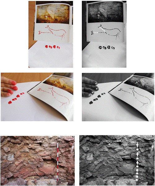 . Dot as artistic income: archaeological life brought me to Santander (north Spain) to attend a meeting. I visited Covalanas Cave, in where there are a stunning Prehistoric rock art, representations of deers made by dots. I tried to reproduce how these could had be done drawing points, as I did with tattoo above. The dot as art is just a retrospective category to name a creative process we unknown (Figure 10).