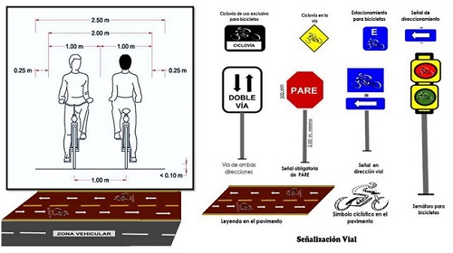 Para la realización de un adecuado acceso vial, se tomó como referencia el Manual de diseño para infraestructura de ciclovias, que hace mención al espacio vial que debe haber para la circulación exclusiva de bicicletas, teniendo una distancia aproximada de 2.50 mts de ancho en sentido bidireccional o comúnmente llamado salida y retorno con sus respectivos separadores del tráfico vehicular y del peatón. En los carriles pequeños ira señalizada la calzada por donde pasará la bicicleta, esta vía puede ser de uso compartido con el tráfico vehicular (Ministerio de Vivienda y Urbanismo de Chile 2015).