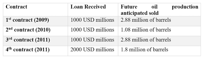 Until 2013, Ecuador had signed 4 agreements with the Chinese government. The contracts prescribed and anticipated the sale of a fixed number of oil barrels, so that the Ecuadorian government could receive financial assistance from the China Development Bank at floating interest of around 7%. Consequently, the Ecuadorian foreign debt rose from US$ 7392 million in 2009 to US$ 16913 million in 2014, from which 37.6% is owed to China, 2010 (Banco Central del Ecuador 2014). Furthermore, at the beginning of 2015, the Ecuadorian economy was shrinking because of the fall of oil prices. This situation encouraged Rafael Correa to visit China to negotiate further lines of credit with Chinese officials. After Correa attended the ministerial meeting of the Forum of China and the Community of Latin American and Caribbean States (CELAC), Correa reunited on various occasions with his counterpart Xi Jinping, resulting in the signing of a series of contracts which included new lines of Chinese credits that reached US$ 7500 million, from which 26.6% has been designated merely to compensate fiscal imbalances produced by the downfall of the oil prices, while the rest will be used to finance the construction of what will be the biggest refinery in Ecuador.