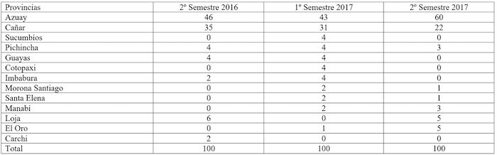 El origen territorial del conjunto de los alumnos investigados tiene una procedencia predominante de la provincia donde se ubica el centro universitario (Cañar) y su limítrofe (Azuay), que aportan el mayor porcentaje de representación estudiantil (79%). Mientras que resulta escasamente significativa la presencia de las restantes veintidós provincias que conforman el actual Ecuador.