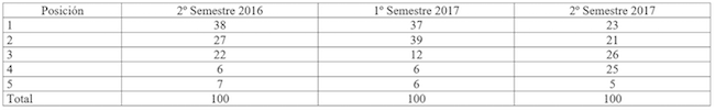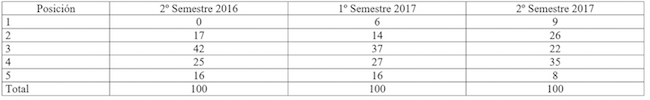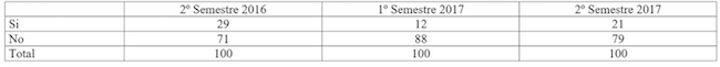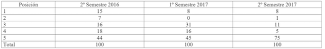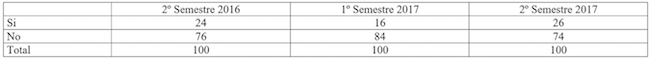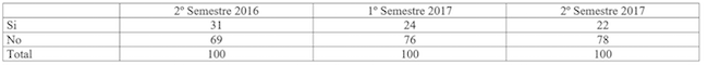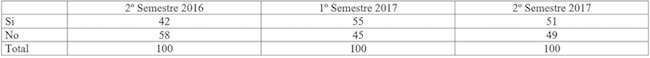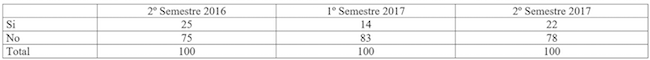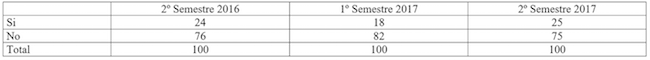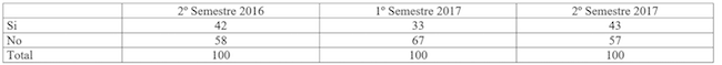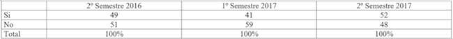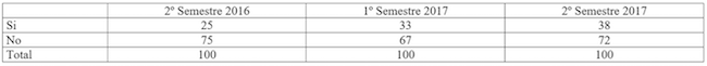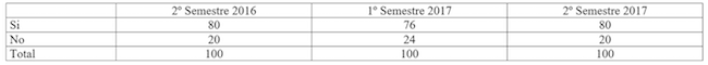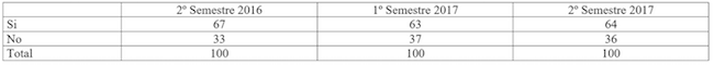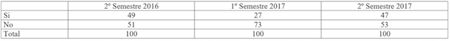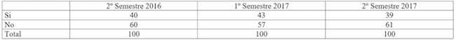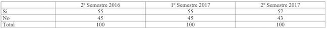 Los alumnos del 2º Semestre de 2016 ascendían a 55 estudiantes, compuestos por un 51% por mujeres y un 49% por varones que hemos agrupados en dos franjas etarias: un 59% entre los 18 a 22 años y un 41% contaba con 23 o más años, siendo su media de 21,4 años. El segundo grupo de alumnos, correspondiente al 1er Semestre de 2017, estaba integrado por 49 estudiantes, un 49% por mujeres y un 51% por hombres, distribuidos según su edad en un 59% entre los 18 a 22 años y un 41% alcanzaba los 23 o más años, siendo su media de 22,8 años. El tercer grupo de alumnos que conformaban el 2º Semestre de 2017 ascendía a 65 estudiantes, un 57% de mujeres y un 43% de hombres, de los cuales un 81% se encontraba en un intervalo entre los 18 a 22 años y un 19% tenían 23 o más años, siendo su media de 20 años.
