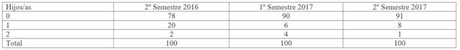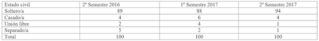 En relación al estado civil de los tres grupos de estudiantes se aprecia un elevado porcentaje de alumnos solteros, un 91%, sin embargo, un 14% de ese universo cuentan con cargas familiares.