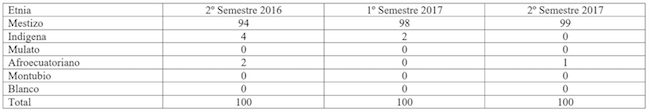Étnicamente representa una hegemonía estudiantil autodefinida como mestizo/a.