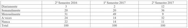 Un alto porcentaje de los estudiantes analizados, más de – partes, aseguran ser lectores de prensa, donde destaca una frecuencia de lectura “semanal” con un índice que fluctúa entre un 40% al 49%.