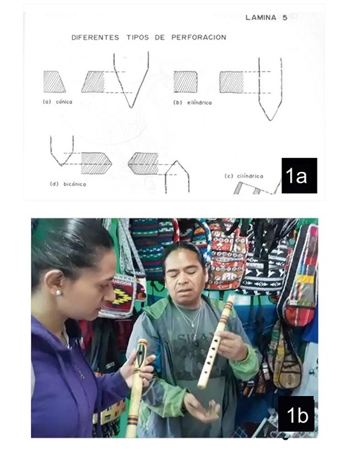 (Lévy 1992 :605). Esta es una constancia en los instrumentos aerófonos (como se muestra en la Figura 2c). Con respecto a su uso, al igual que en todos los aerófonos, el sonido resultante dependerá de la técnica utilizada por el intérprete,“dependiendo de la intensidad variable del soplido, se producen sonidos armónicos y al hacer girar el agujero de la embocadura, alejándolo o acercándolo a los labios, se puede conseguir tonos más bajos ”