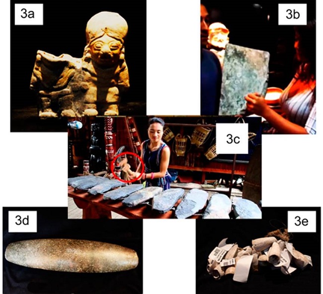 Tío Antonio es una plancha de piedra, su sonido es producido por la concentración de metales dentro de la roca. Dado que no existe una uniformidad en la presencia metálica, podemos obtener distintos sonidos dependiendo del sitio en donde se golpee al objeto (Figura 3 b).