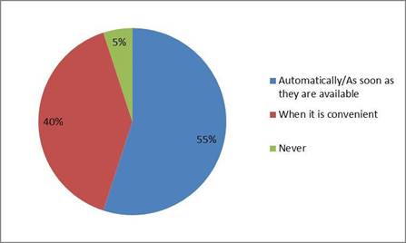 However, the results show that the majority of students surveyed did download updates when available or automatically. This is a sign that they are aware of cybersecurity threats because “running out-of-date software can provide an open door for hackers to take advantage of holes left in programs that haven't had critical security updates applied” (Palmer 2019: 5).