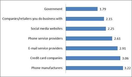 Millennials tend to have more trust in cell phone manufacturers; companies such as Apple advertise that they refuse to give out information of customers, even if a government agency seeks it (Nakashima 2016: 1). Also, students have a higher level of trust in in credit card companies, cell phone service providers and email providers.