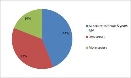 Figure 6 looked at how students felt their personal information had changed over the last five years. 44% of students said they felt that their personal information was as secure as it was five years ago. 37% felt it was less secure, and 19% said they felt as if it was more secure.