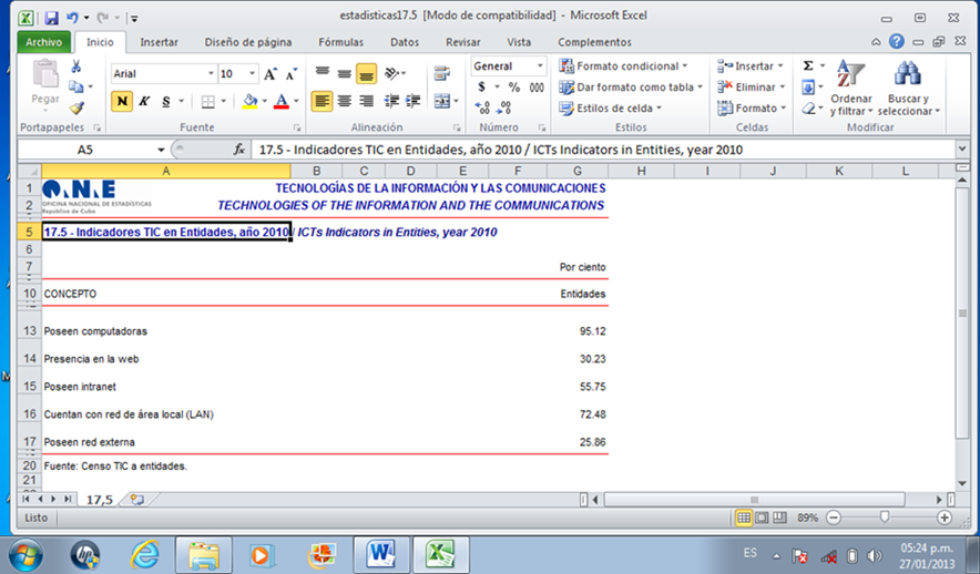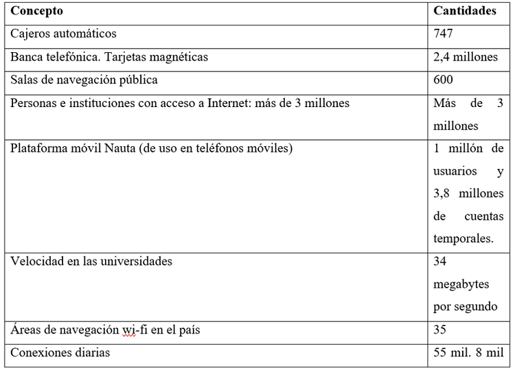 La Tabla 1 muestra algunas informaciones relativamente recientes sobre las TIC en Cuba.