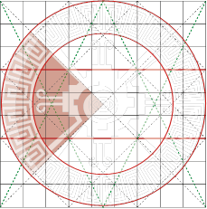 La Figura 4 evidencia la estructura compositiva utilizada para el ordenamiento de grafismos que constituyen la marca. Se aplica la ley de tripartición armónica terciaria, definida por (Milla 1990:95-96) como “el resultado del juego de diagonales del cuadrado con las diagonales del rectángulo 1/2, cuyas cruces permiten ubicar los puntos del trazo de las ortogonales respectivas”. Desde una visión semántica se comprendería la visión andina de dividir el espacio en tres partes que representarían el Hanan Pacha, Kai Pacha y Uku Pacha. Además el punto medio permite generar un equilibrio simétrico que representa la complementariedad de la dualidad.