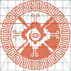 En la propuesta de la Figura 5, se aplican los citados principios: Equilibrio Radial, comprendido como aquel que da lugar a un movimiento giratorio o de rotación, que toma como centro un punto, sobre el cual rotan los elementos, logrando así la compensación de fuerzas. El eje es la pupila del Ojo del Conocimiento u Ollín. Repetición, manifestado en los círculos concéntricos que agrupan los elementos del grafismo, así como el ícono de Willodmawe Ñimin, que representa lo cíclico del tiempo. Ritmo, representado por una ampliación progresiva y regular de un elemento, partiendo del Ojo como eje central, lo que da un sentido dinámico; obliga al espectador a recorrer la secuencia presentada. Dirección, consiste en enlazar entre los tres mundos, el marco que contiene las formas cercanas.