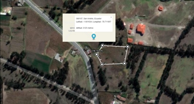 Para la obtención de la muestra se cultivó tres hectáreas del maíz morado, en el cantón Guano, parroquia San Andrés, comunidad de Batzacón, el que fue cosechado a los cuatro meses y medio, y se recolectó 2.0 kg entre granos y corontas mediante un muestreo probabilístico aleatorio simple (Ñaupas et. al 2011: 187). Su ubicación se muestra en la Figura 1.