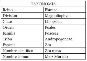 La clasificación taxonómica del maíz morado se muestra a en la Tabla 1: