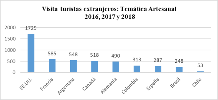 Los datos de la Figura 6 muestran que el mayor número de turistas extranjeros en el período 2016, 2017 y 2018, provenían de América del Norte, Europa Occidental, América del Sur, Europa Meridional, al museo que mantiene una temática artesanal: Reserva y Museo de Artes Populares, CIDAP.