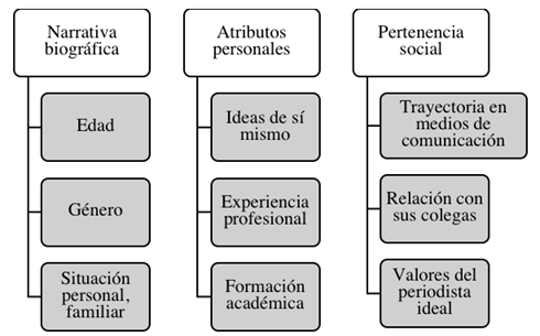 Aunque este trabajo no intenta introducirse en el descubrimiento de las identidades profesionales de los periodistas, este acercamiento es útil porque proporciona las categorías donde se puede explorar directamente y conseguir datos significativos, mediante entrevistas semiestructuradas.
