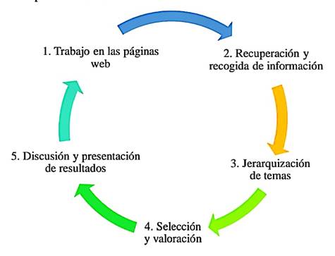 La investigación se efectuó en 2 etapas. La primera (documental) tuvo cinco fases (ver Figura 1): 1. Revisión de la edición digital de los dos medios de comunicación. 2. Recuperación y recogida de los editoriales ligados al Covid-19. 3. Jerarquización de temas, estableciendo aquellos de mayor relevancia que le atañen al problema de investigación y la organización por ejes temáticos 4. Selección y valoración para clasificar los textos en los cuales la esencia es tratar el Covid-19 y sus efectos. 5. Discusión y presentación de resultados.