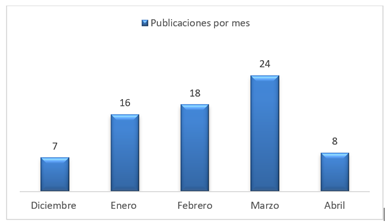 La Figura 1 incluye las publicaciones que han sido subidas en la red social TikTok desde diciembre de 2020 hasta abril de 2021, cabe recalcar que, aunque las investigadoras hayan seleccionado el periodo de exploración desde el mes de noviembre de 2021, los resultados reflejan que no se contó con la presencia del candidato Arauz en dicho mes, puesto que abrió su cuenta en esta red social a partir de diciembre y publicaría por primera vez el día 14 del mismo mes.