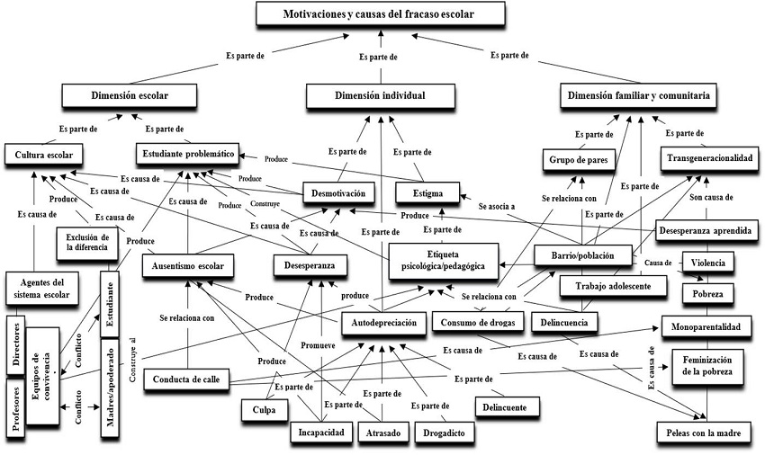 En tal sentido, se comprende que el análisis de las problemáticas identificadas por los jóvenes respecto a las causas del fracaso escolar en la dimensión familiar (entre las que hallamos pobreza, estudios incompletos, diversas formas de violencia, consumo de drogas, delincuencia, entre otros), debe partir por preguntarse por las condiciones de vida estructurales y que, en lugar de reproducir modelos explicativos desde la lógica del déficit individual y/o familiar, indaguen en las diferencias en tanto consecuencias de desigualdad social (Tarabini 2015).