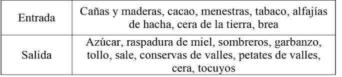 Gracias al Libro de Guías de 1788, Schlüpmann (1993) construyó un mapa con el destino y la procedencia de los cargamentos en Paita, en el que se evidencia cómo Guayaquil fue el tercer puerto con el que el puerto piurano estableció relaciones tanto de entrada como de salida de embarcaciones (404 y 166) después de Panamá (405 y 457) y el Callao (410 y 358). Los productos más comercializados entre Paita y Guayaquil se indican en la Tabla 1.