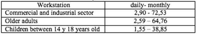 As can be seen in tables 4 and 5, the minimum wage adapted to US dollars is divided into three sectors: the first, the industrial commercial sector, with a minimum wage of 72.53; second, workers considered as older adults, with a monthly minimum wage of 64.76; and, the third group, minor workers between 14-18 years old, with a minimum wage of 38.85.