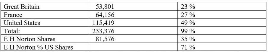 The shares of the Ecuadorian Corporation were divided among British, French and American investors. The 64,156 French shares were transferred by the French investors in the New Guayaquil Land Company. The largest individual investor was E H Norton with 81,576 shares or 35% of the total capital of the Ecuadorian Corporation.