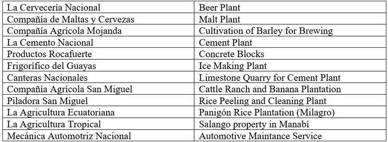 The Corporation’s agribusiness subsidiaries introduced scientific farming techniques on the company’s cattle ranch and rice plantation in Milagro. The Corporation also made a significant contribution to the capitalist modernization of Ecuador in the establishment of the holding company and the management structure it adopted to administer the several business units owned by the Corporation.