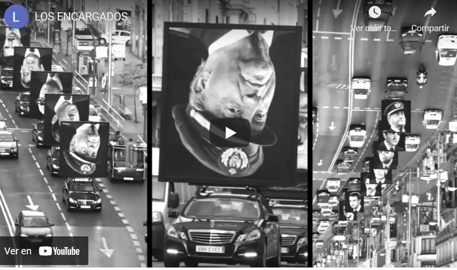 El hecho de agrietar el capitalismo pasa también por criticar las formas de democracia en las que este se inserta, donde el mundo del consumo deviene eje vertebral, por cuanto las múltiples elecciones que plantea desde el mercado pueden tener un correlato de participación efectiva para el sistema democrático, cuando realmente no hablamos de los mismos campos. El transeúnte y el flâneur conceptualizados por Benjamin (2005) como figuras centrales de la modernidad son puestas en entredicho en esta obra, donde los viandantes de las calles de Madrid no pueden desarrollar una mirada distraída. Incluso la música escogida, himno socialista y revolucionario, generan un simbolismo que afecta el paseo por las céntricas calles. Esto genera una paradoja: cántico revolucionario-figuras autoritarias, lo cual desde nuestro punto de vista puede ir hacia la inconsistencia del mundo del consumo que el arte critica: necesidades no creadas son cubiertas por medios no autogestionados pero disfrazados de libertad y autonomía del mundo del consumo, máxima del ordoliberalismo alemán que coloca al ciudadano-consumidor como un igual que tiene para con sus conciudadanos un consenso basado precisamente en la libertad de consumo (Laval y Dardot 2015:115).