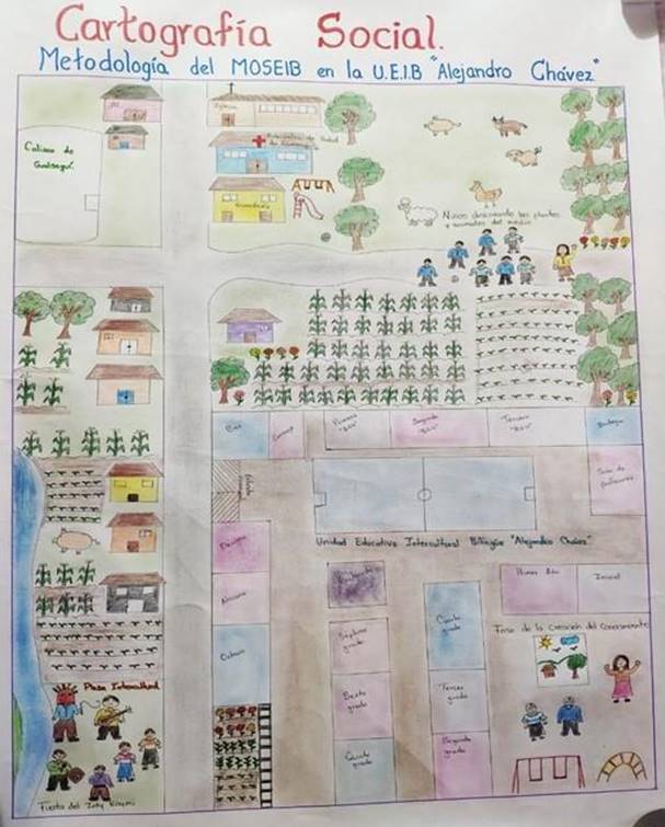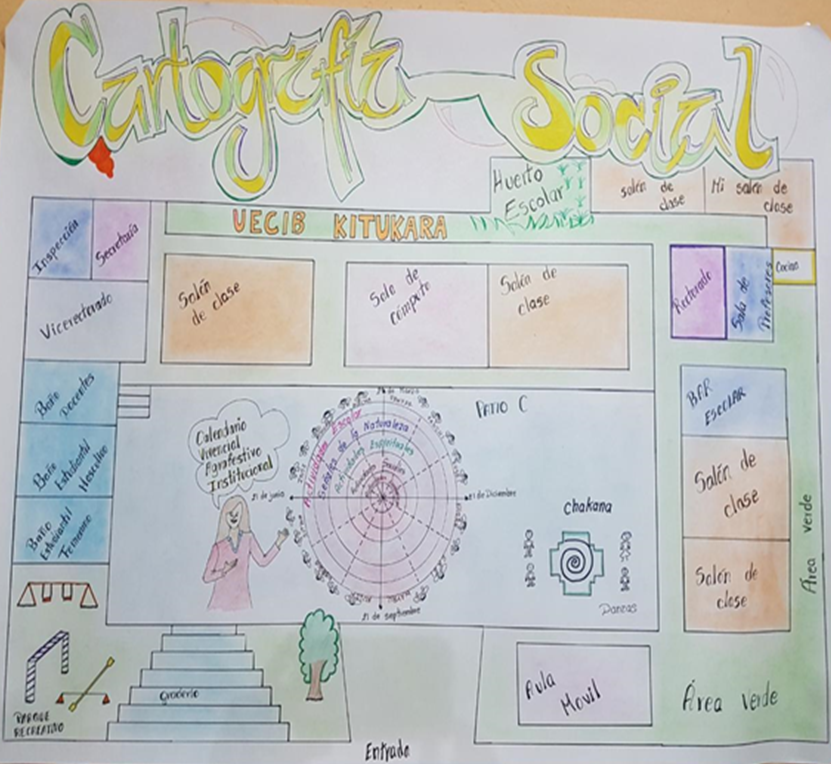 La Figura 3 muestra el proceso metodológico del MOSEIB representado por los docentes colaboradores de la investigación. En la cartografía se detallan las fases de la metodología del MOSEIB. Se destaca el trabajo fuera del salón de clases, utilizando el medio que nos rodea, ya que de esta manera se logra captar la información a través de los sentidos.