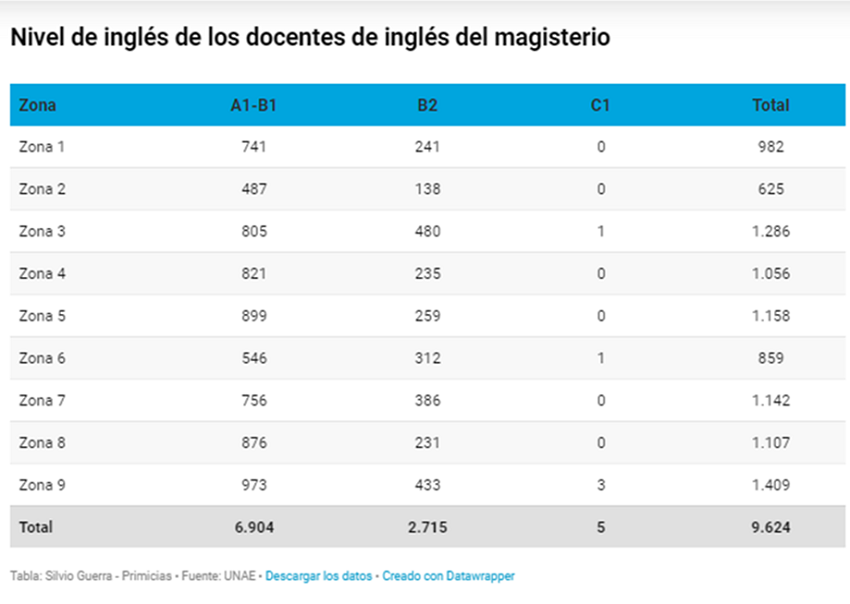 Similarly, Machado (2019) displays relevant outcomes regarding the teachers’ proficiency level in Ecuador.