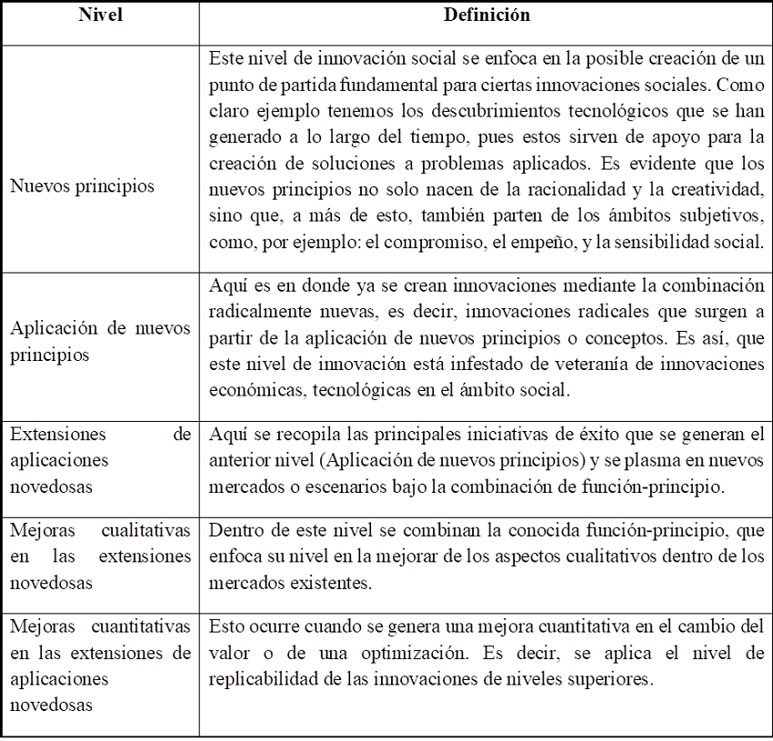 Para definir el nivel de innovación social de las mujeres comerciantes informales de la parroquia Sinincay se utilizó la clasificación de Morales (2012), expuesta en la Tabla 4.
