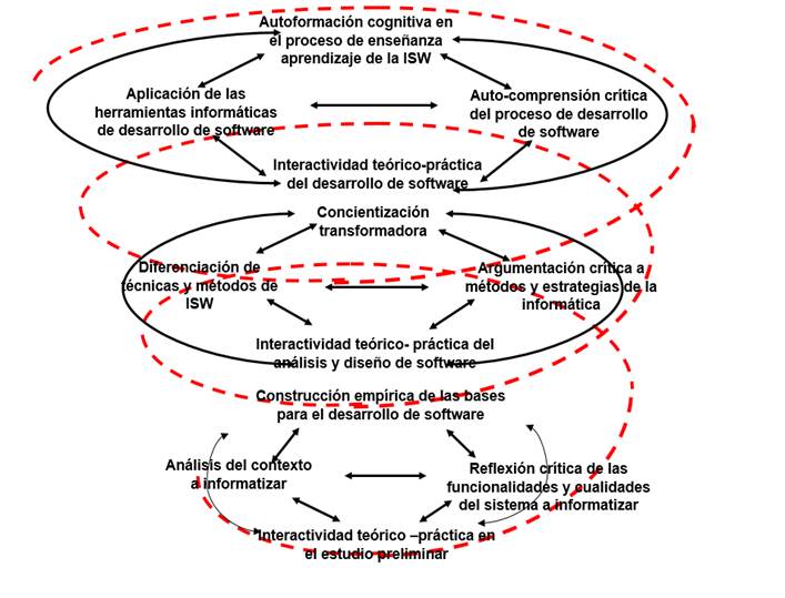 Por tanto, en el proceso de autoformación del estudiante la argumentación crítica de métodos y estrategias de la informática en relación bidireccional con la diferenciación de técnicas y métodos de ingeniería de software; en la interacción teórico práctica del análisis y diseño de software se enriquece con métodos novedosos en la sistematización formativa para dinamizar la apropiación y profundización del conocimiento. Este proceso enriquece la construcción de las bases para el desarrollo de software y forma en el estudiante una conciencia transformadora para promover acciones que conducen al desarrollo de software elevando los niveles de independencia.