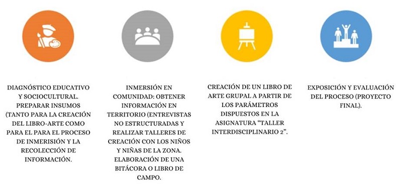 Desde 2021 se han realizado prácticas de servicio comunitario y preprofesionales a través de procesos de inmersión en comunidad y acción artística situada en territorio. Se han creado, asimismo, murales, talleres de dibujo, residencias artísticas, escultura, pintura, danza, etc. Y en estas tres últimas inmersiones, se produjo una activación artística con el fin de crear libros-arte colaborativos, que sirvieran para reconstruir la memoria y reivindicar la voz y las historias locales de sus pobladores sobre su identidad.