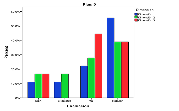 En la Figura 2 puede constatarse que los peores resultados de los estudiantes están en la dimensión 3.