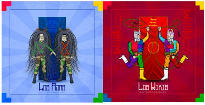 Se caracterizan por sus trajes llamativos, en los que prevalecen cuatro colores: amarillo, azul, rojo y verde. Estos personajes se consideran los guardias de la fiesta, y apoyan al markantayta y a la markanmama. Los wikis o wikkunas se consideran “los juguetes del niño, pero también como los guardianes de la navidad y hacen reír a quienes acompañan la imagen del niño” (Redacción Diario Correo, 2017, pár. 4). A los wikis, símbolos de la cultura saraguro, se les suman otras figuras: los ajas, el oso, el león, entre otros animales que doman los paileros o guías. Además de cari y huarmi sarahuis, personificados por niños y niñas que, a su vez, entonan villancicos.