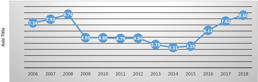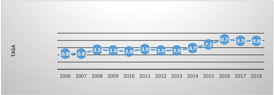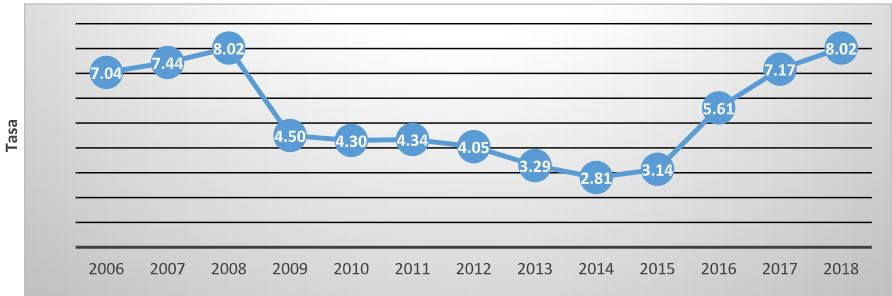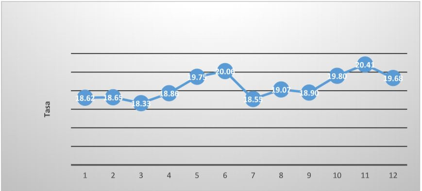Fuente: Elaboración propia con cifras proporcionadas por el Banco de México e Instituto Nacional de Geografía y Estadística (2018). http://www.inegi.org.mx/sistemas/bie/ (consultado en enero 10 del 2019) Ruta temática: Financiero y bursátil > Indicadores financieros y bursátiles > Tasas de rendimiento en instrumentos del mercado primario > Certificados de la Tesorería de la Federación (CETES) > 28 días